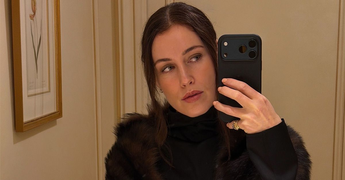 Annabel wears a fur coat and the row sally bag.
