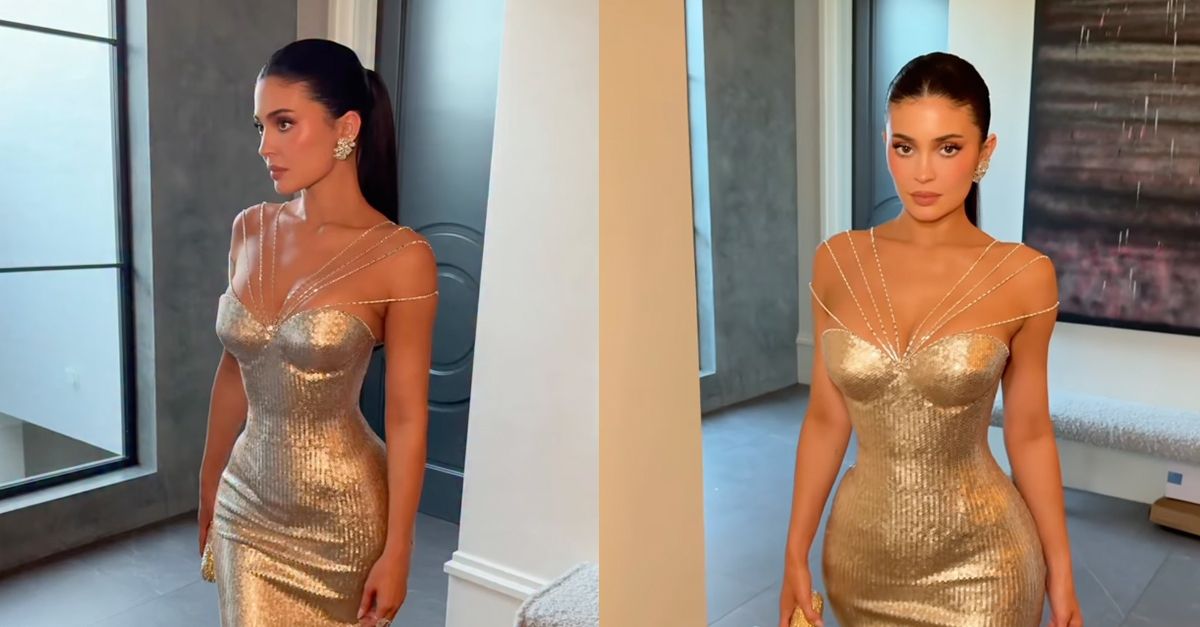 Kylie Jenner Wore a Custom Metallic Gown to the Golden Globes
